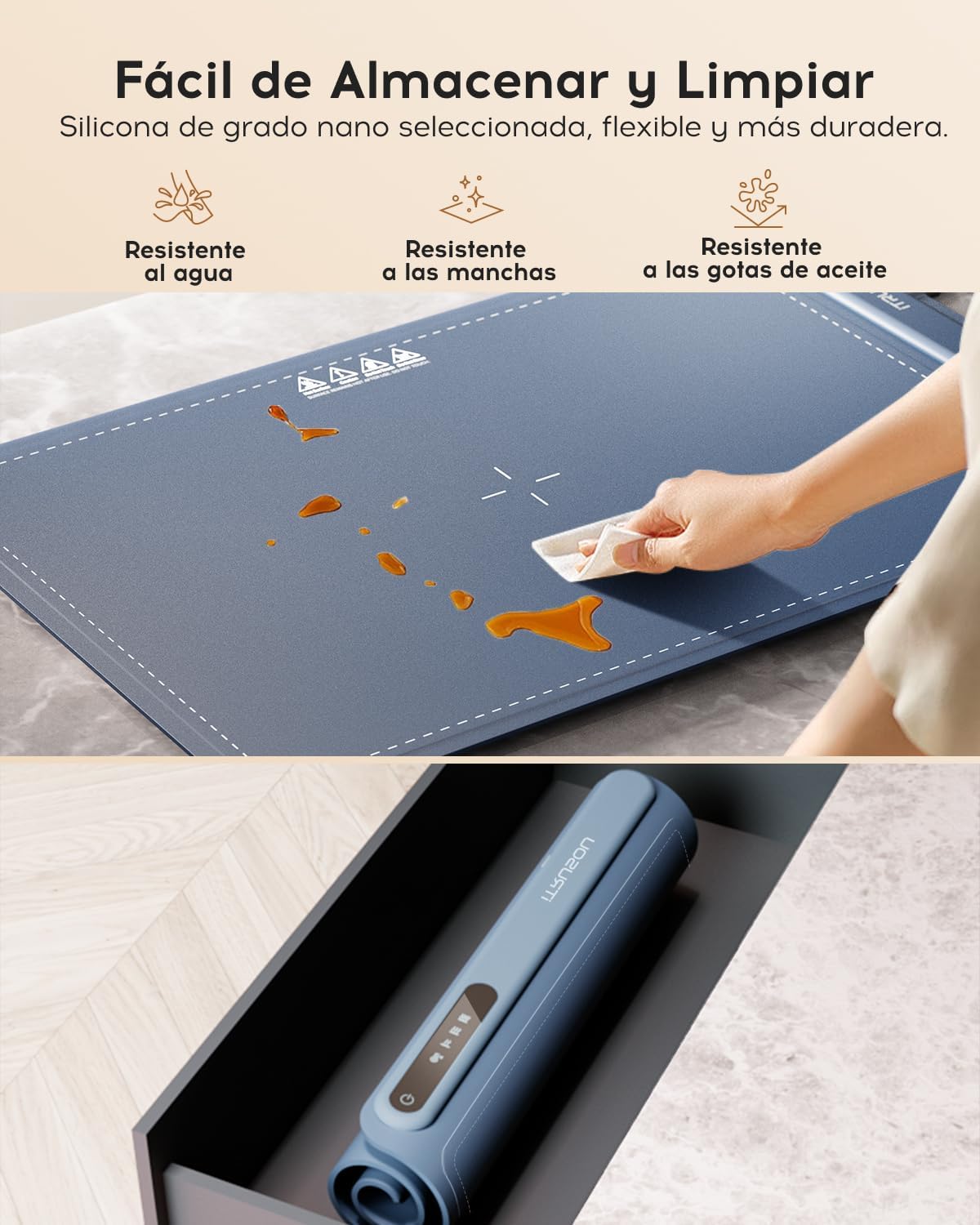 Ademas de servir cómo una bandeja para organizar tu comida en la mesa, este tapete cuenta con sistema de térmico eléctrico que permite que tu comida no se enfrié, tus invitados disfrutarán de una comida cálida y deliciosa en cualquier momento.