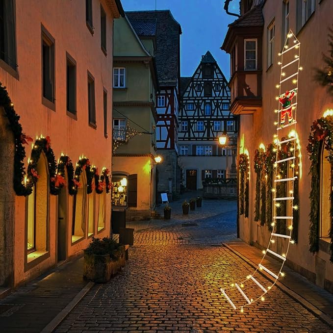 Escalera de 2 metros de largo, Ideal para fachada e interiores, esta pieza combina tradición, originalidad y creatividad para llenar tu hogar de ambiente navideño.