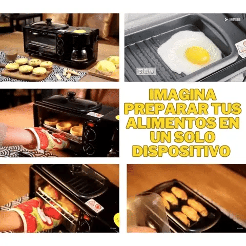 Reemplaza 3 electrodomésticos en 1 solo aparato y Ahorra tiempo preparando todo el desayuno a la vez.