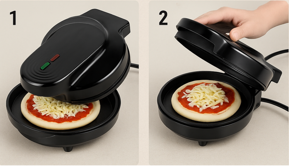 Su diseño de calentamiento de doble tapa y material antiadherente te garantiza cocinar la mejor pizza de tu vida sin ensuciar platos de más y con pocos ingredientes.