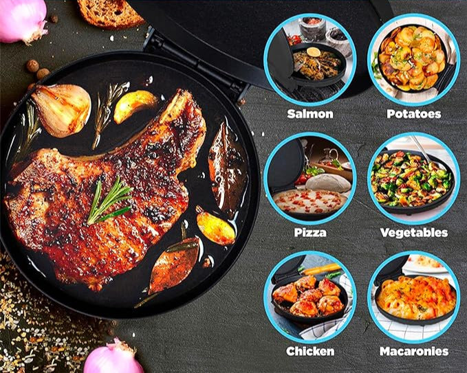 Desde Pasteles de pizza personales con una corteza crujiente o recalentar mini pizzas congeladas. También es perfecto para hacer quesadillas, omelettes, galletas gigantes, tortas y mucho más.