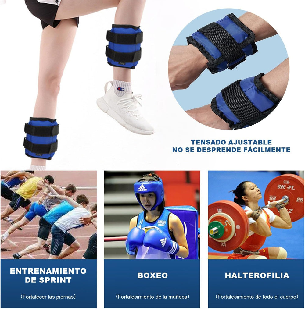 Cada set Incluye 1 par, cada tobillera pesa 2,5 para un total de 5 kg.