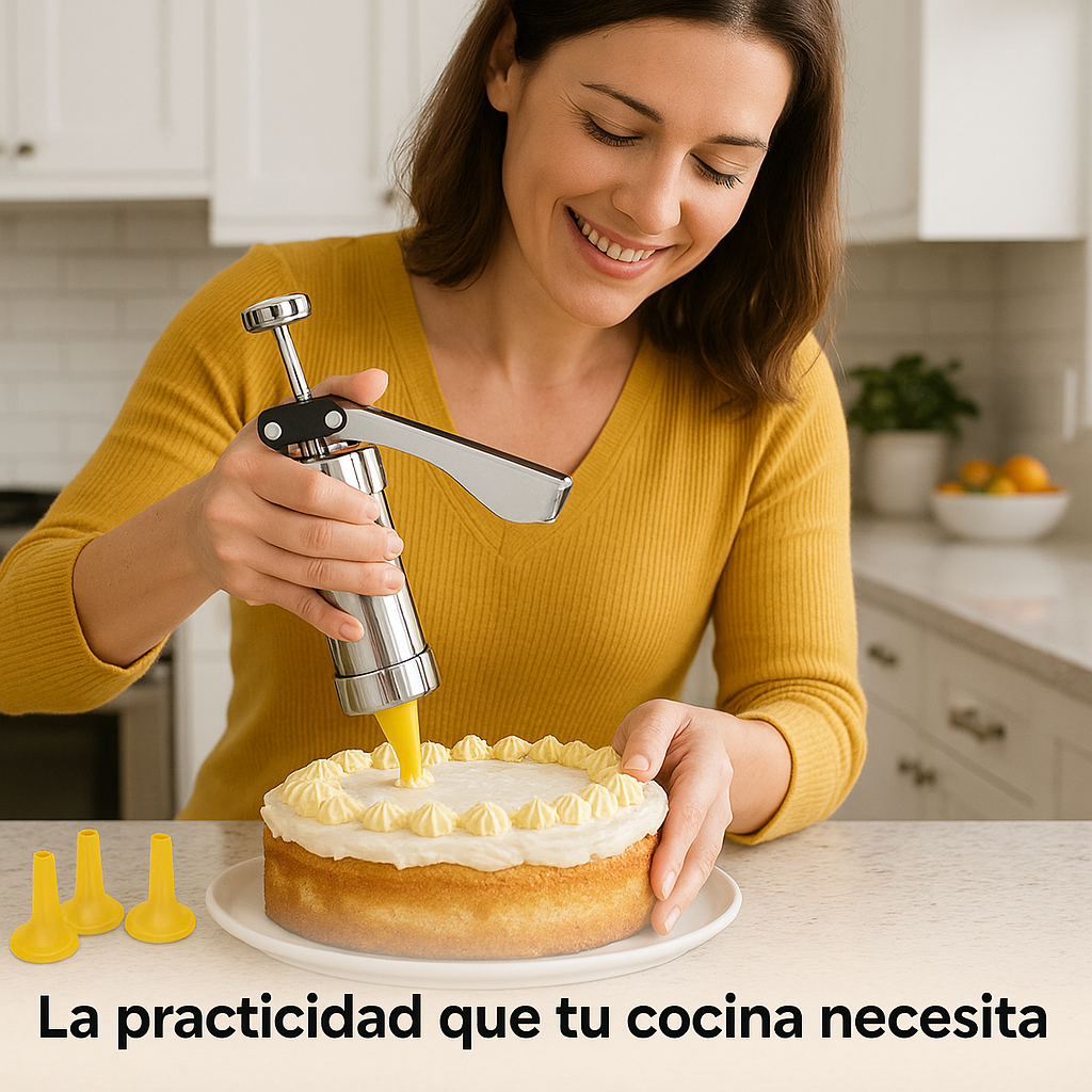 Ya no necesitas luchar con mangas incómodas ni moldes que no dan resultado. Esta pistola lo hace todo, y con estilo. 👨🏼🍳