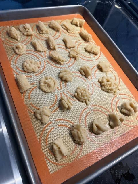 Este set incluye 10 moldes con diseños únicos para hacer galletas en formas y 4 boquillas para decoración libre.