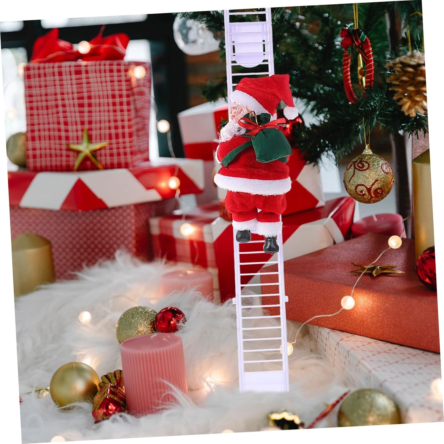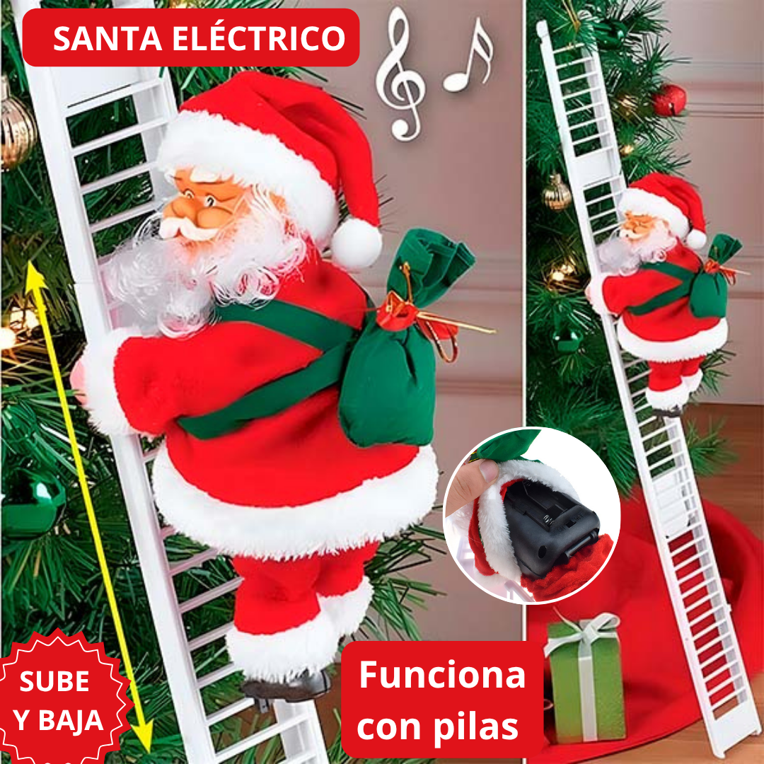 Decora tu hogar con el adorable Papa Noel trepador eléctrico, que sube y baja por una escalera mientras lleva su saco de regalos. 🎅