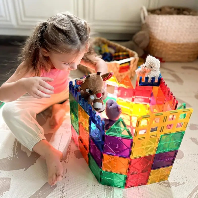Cada pieza cuenta con imanes seguros y fuertes que facilitan el ensamble, permitiendo que los niños experimenten, construyan y aprendan mientras juegan. Ideal para estimular la motricidad fina, la coordinación mano-ojo, el pensamiento lógico, la creatividad y habilidades STEM desde temprana edad.