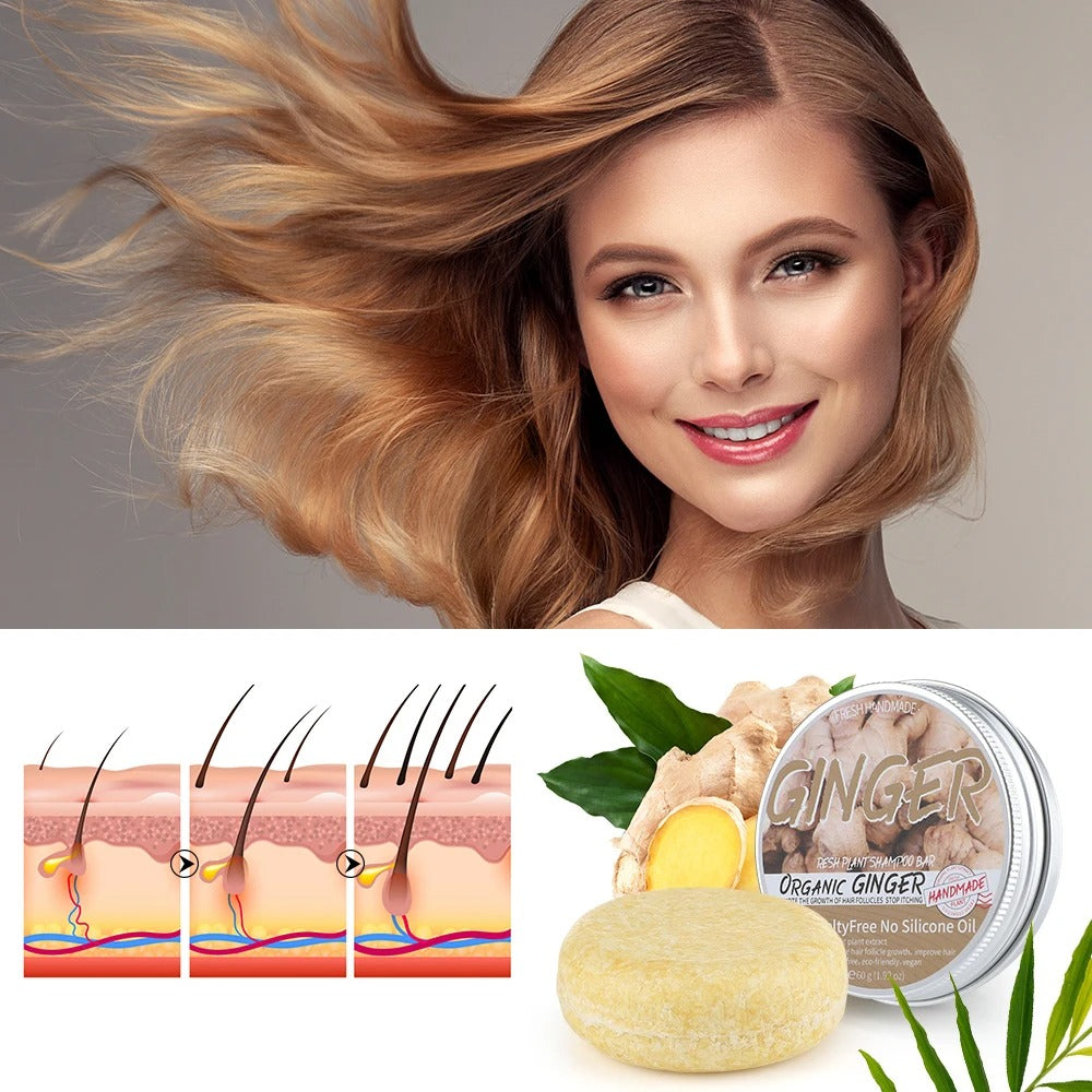 Barra de champú de jengibre para el crecimiento del cabello: fortalece cada folículo piloso y raíz. El mejor tratamiento de pérdida de cabello para mejorar el volumen y el grosor del cabello para un crecimiento más rápido, saludable y más fuerte mientras mejora la textura del cabello