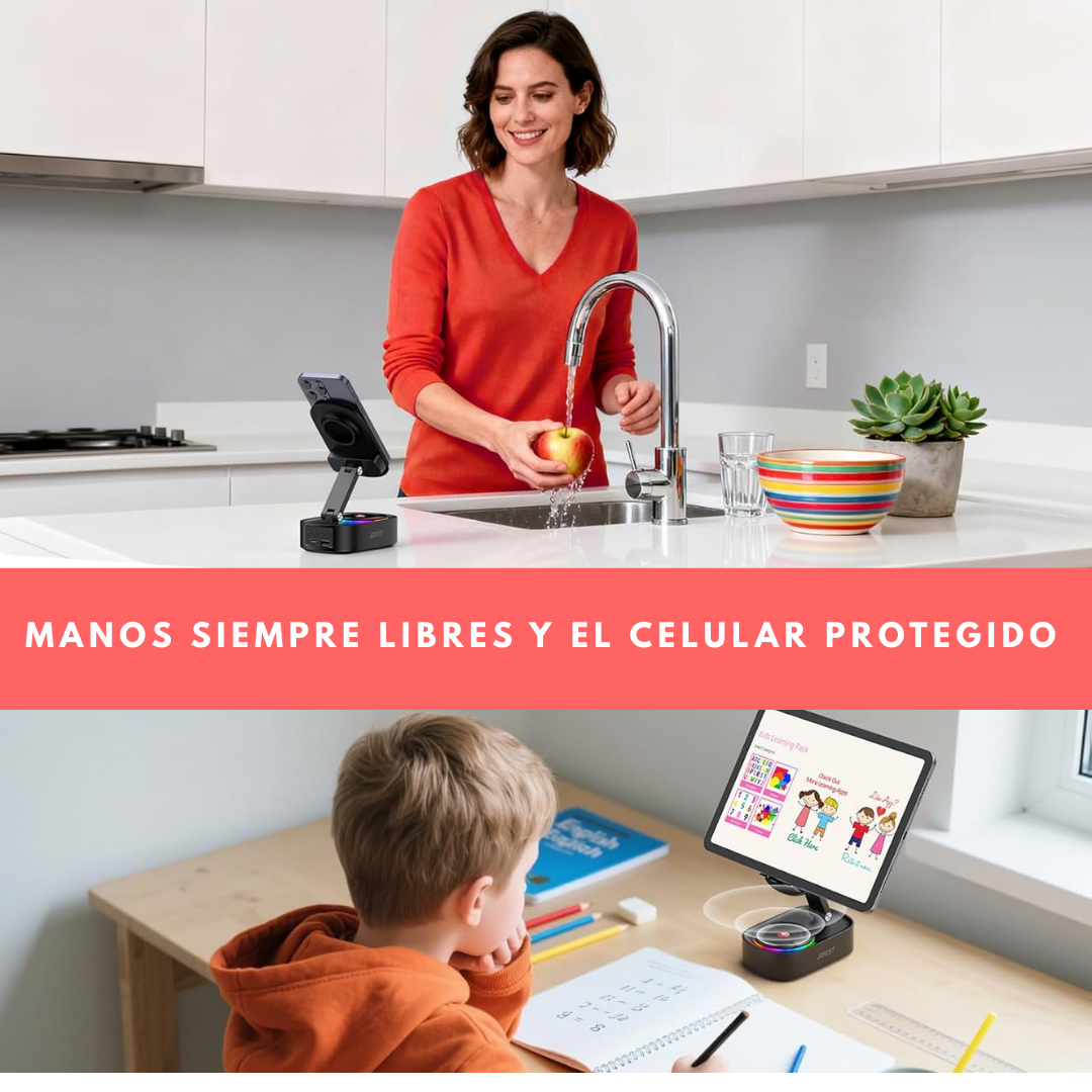 Este soporte es único y brinda mucha comodidad al usar tu celular, evitando golpes y maltratos en tus dispositivos.