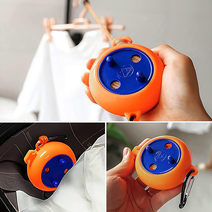 Material de alta calidad: hecho de ABS de alta calidad, mosquetón de aluminio y cuerda de nailon, que soporta cualquier ropa húmeda y pesada. el color se envía aleatorio y puede llegar naranja o azul.