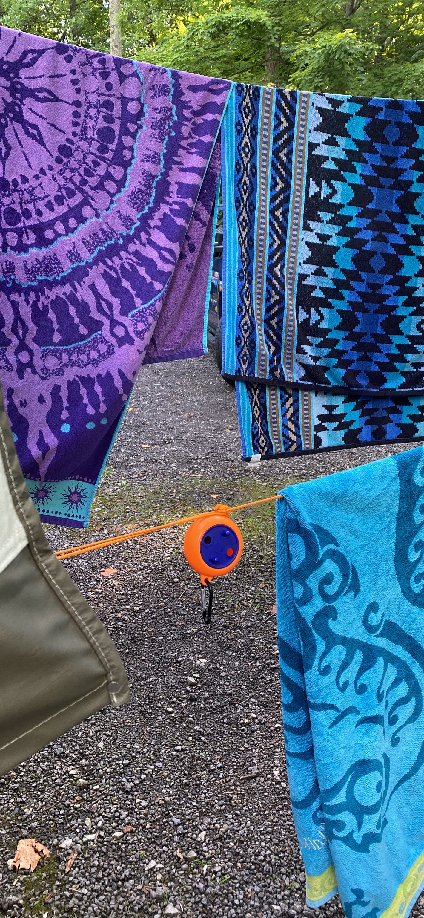 El tendedero portátil perfecto para maletas, mochilas y campamentos.