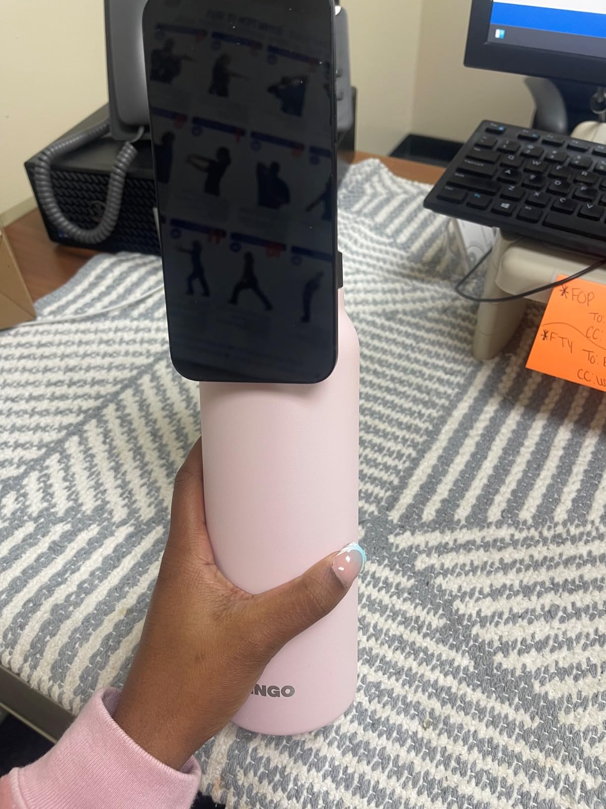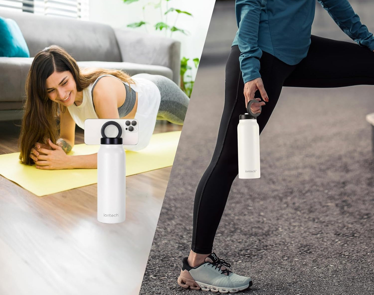 Este termo de agua fabricado en acero inoxidable es térmico e incluye un soporte de anillo magnético incorporado que sostiene su teléfono de forma segura mientras tu haces actividades.