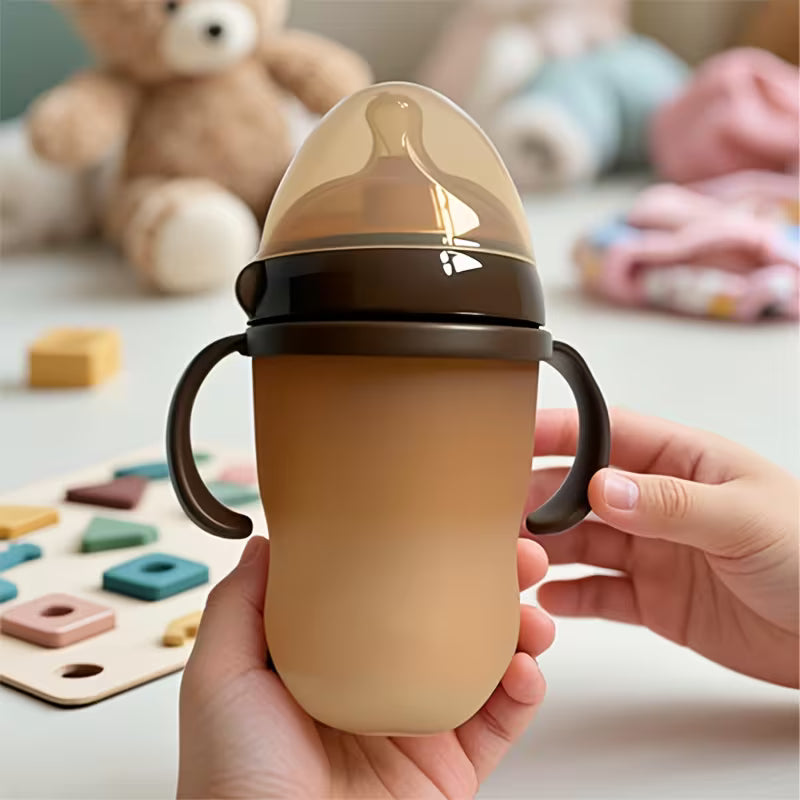 Hecho de silicona suave al tacto y similar a la piel, este biberón exprimible se siente como una madre y ofrece al bebé ergonomía y un diseño práctico.